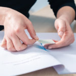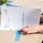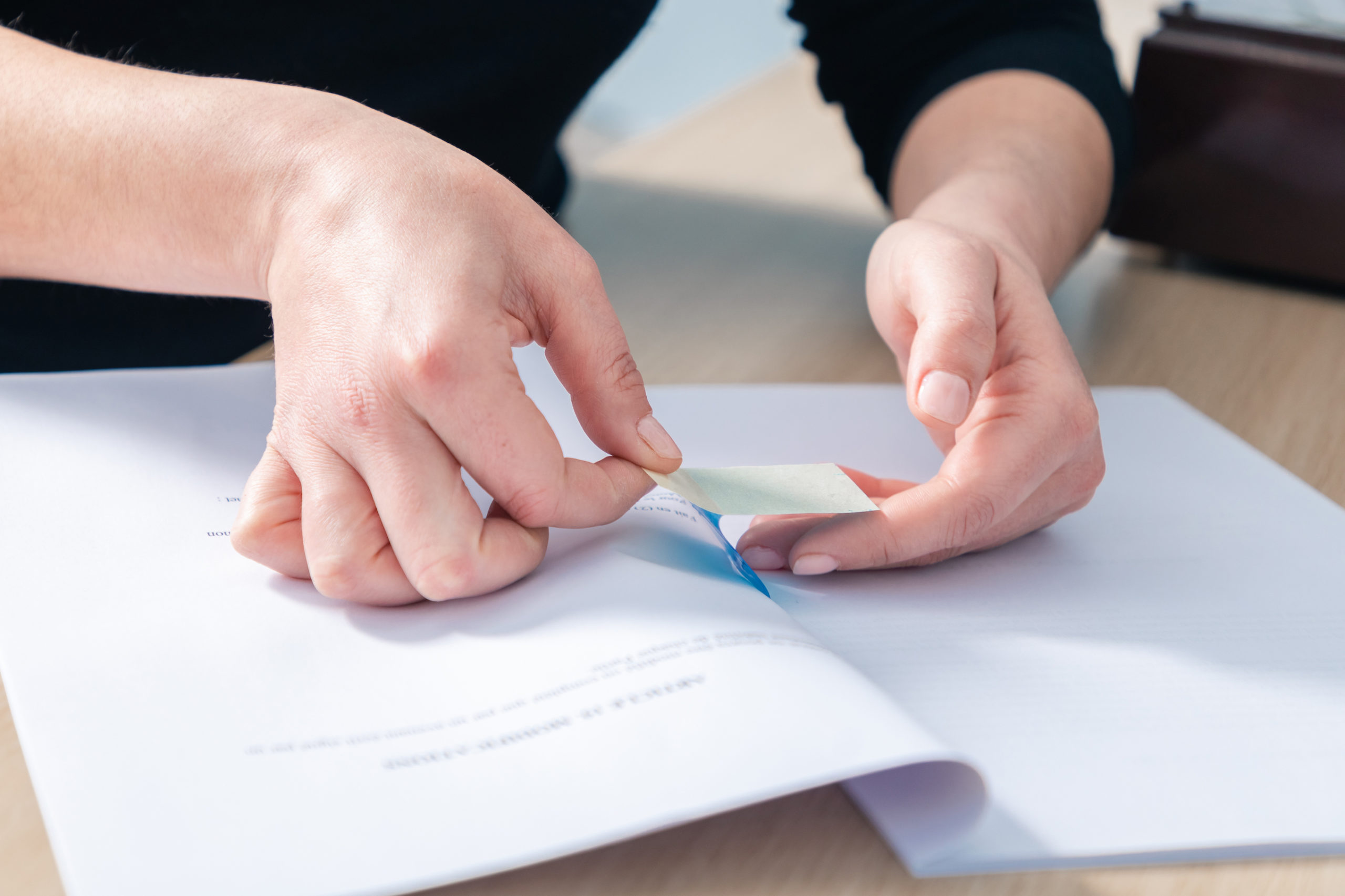 Doté de deux bandes autocollantes à ses extrémités, le ruban est collé au recto et au verso de la page de signature, pour éviter les paraphes sur chaque page.